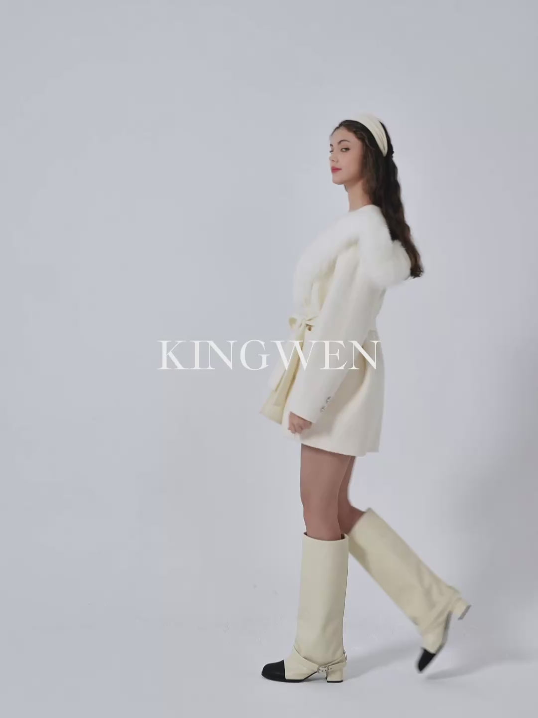Detachable Fox Fur White Belted Hoodie Coat