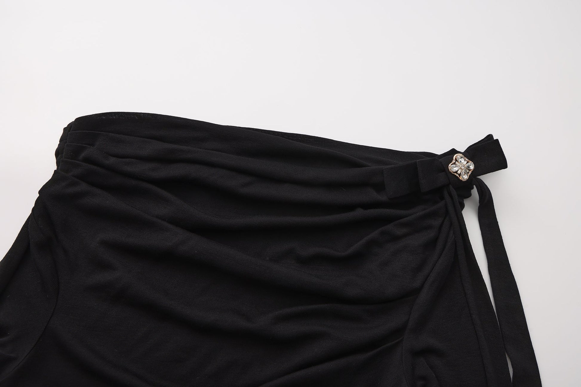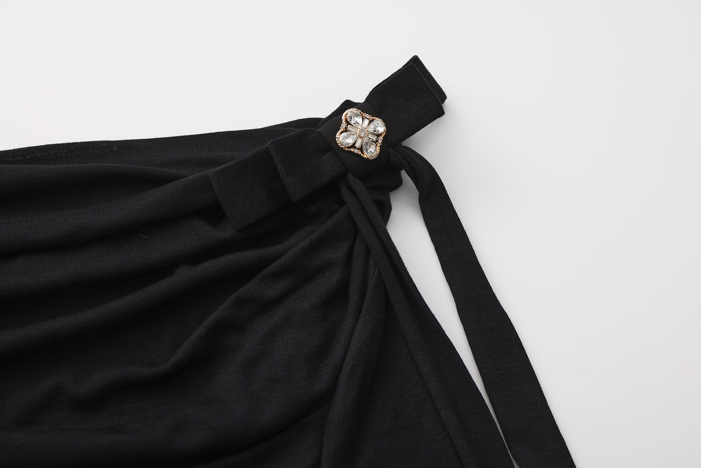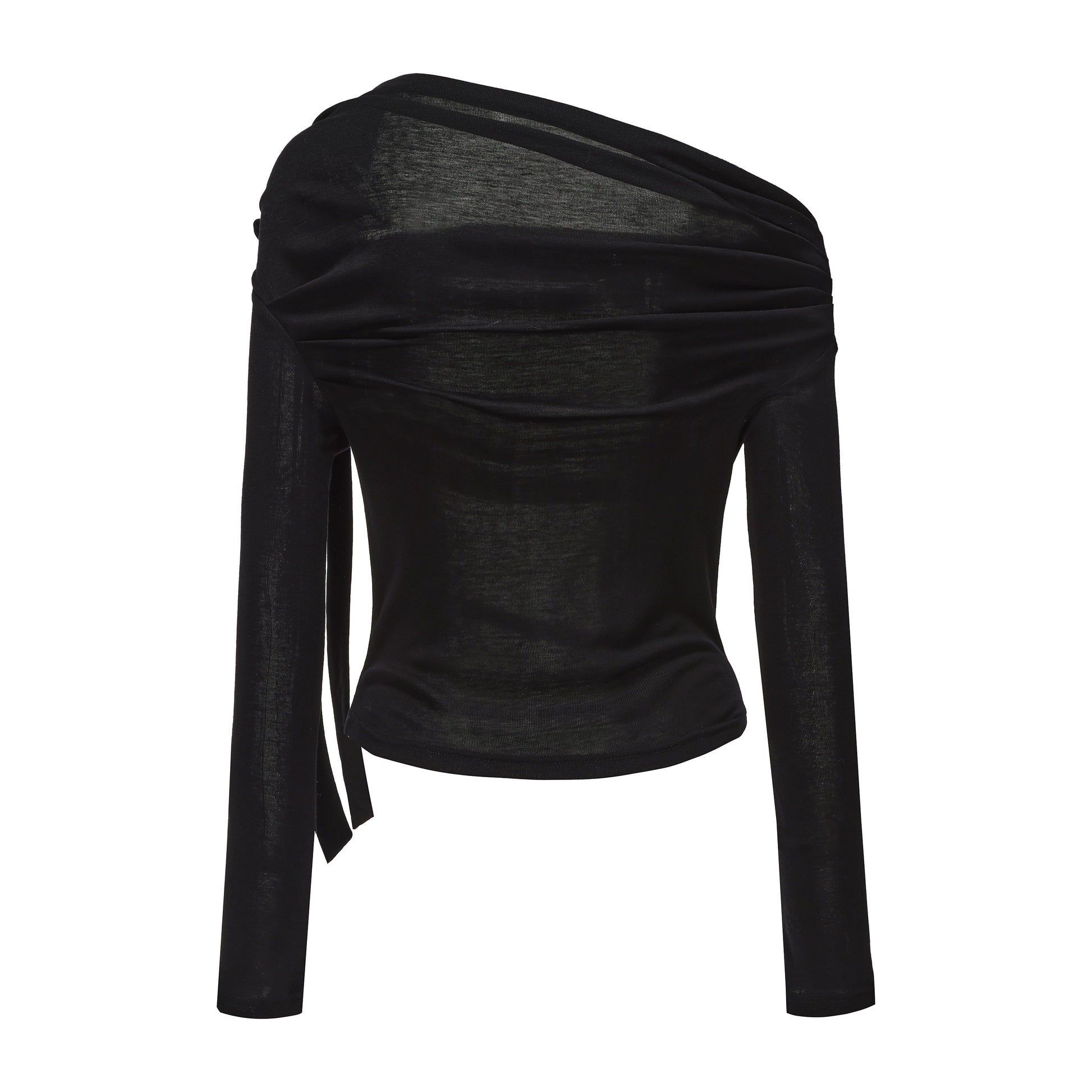Black Off-The-Shoulder Pleated Bow Ribbon Blouse