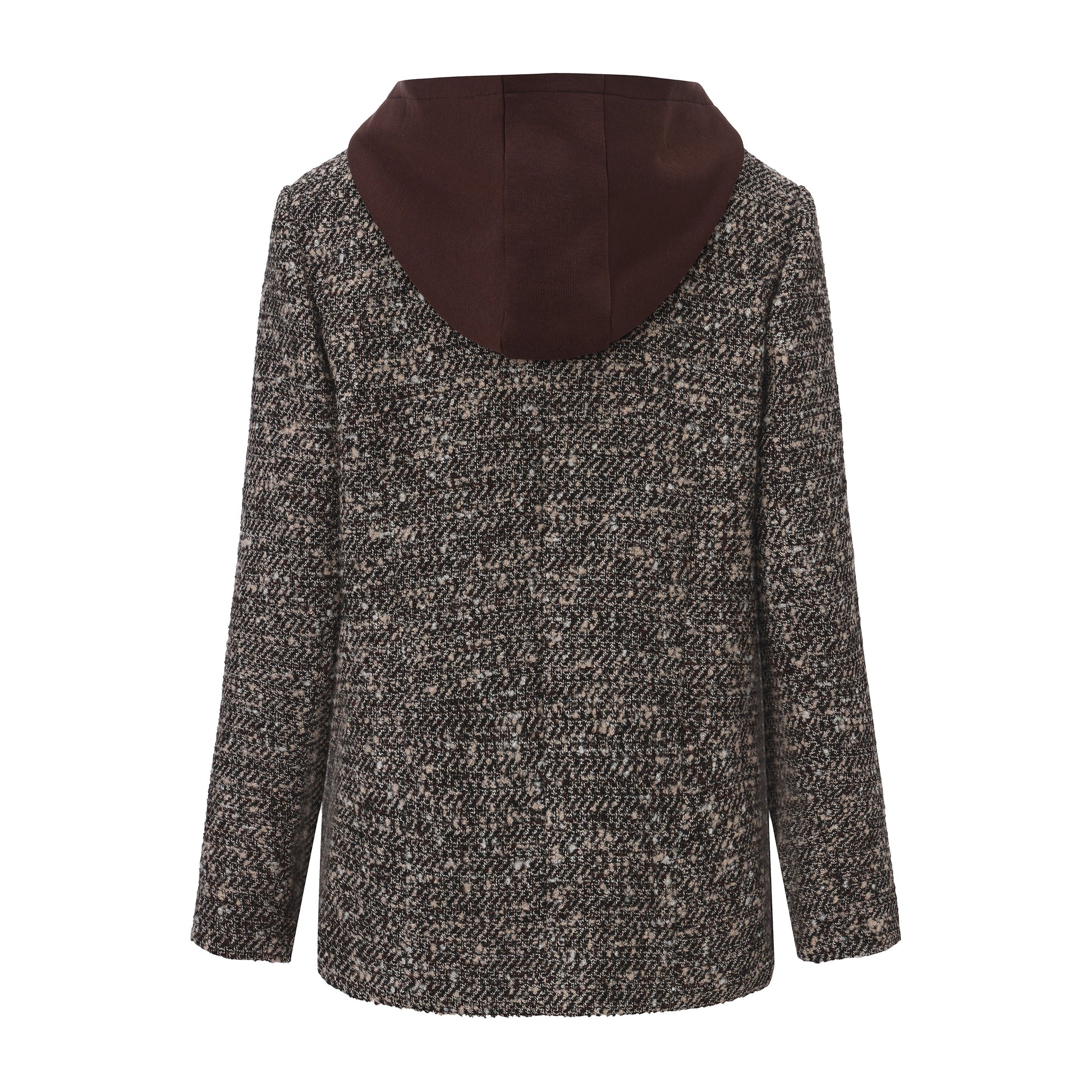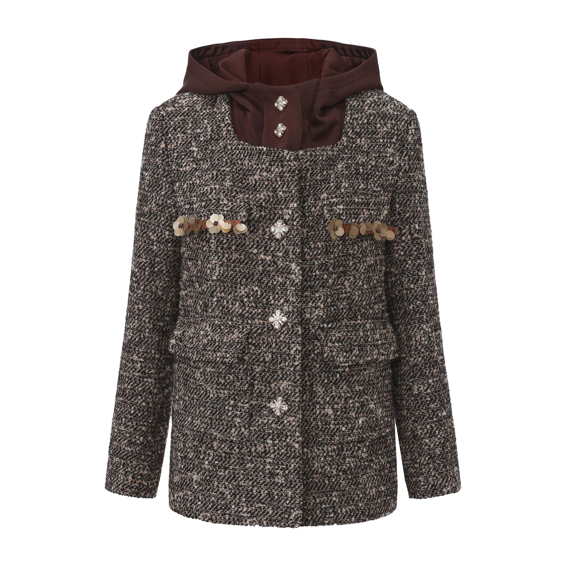 Brown Detachable Square-Necked Tweed Coat