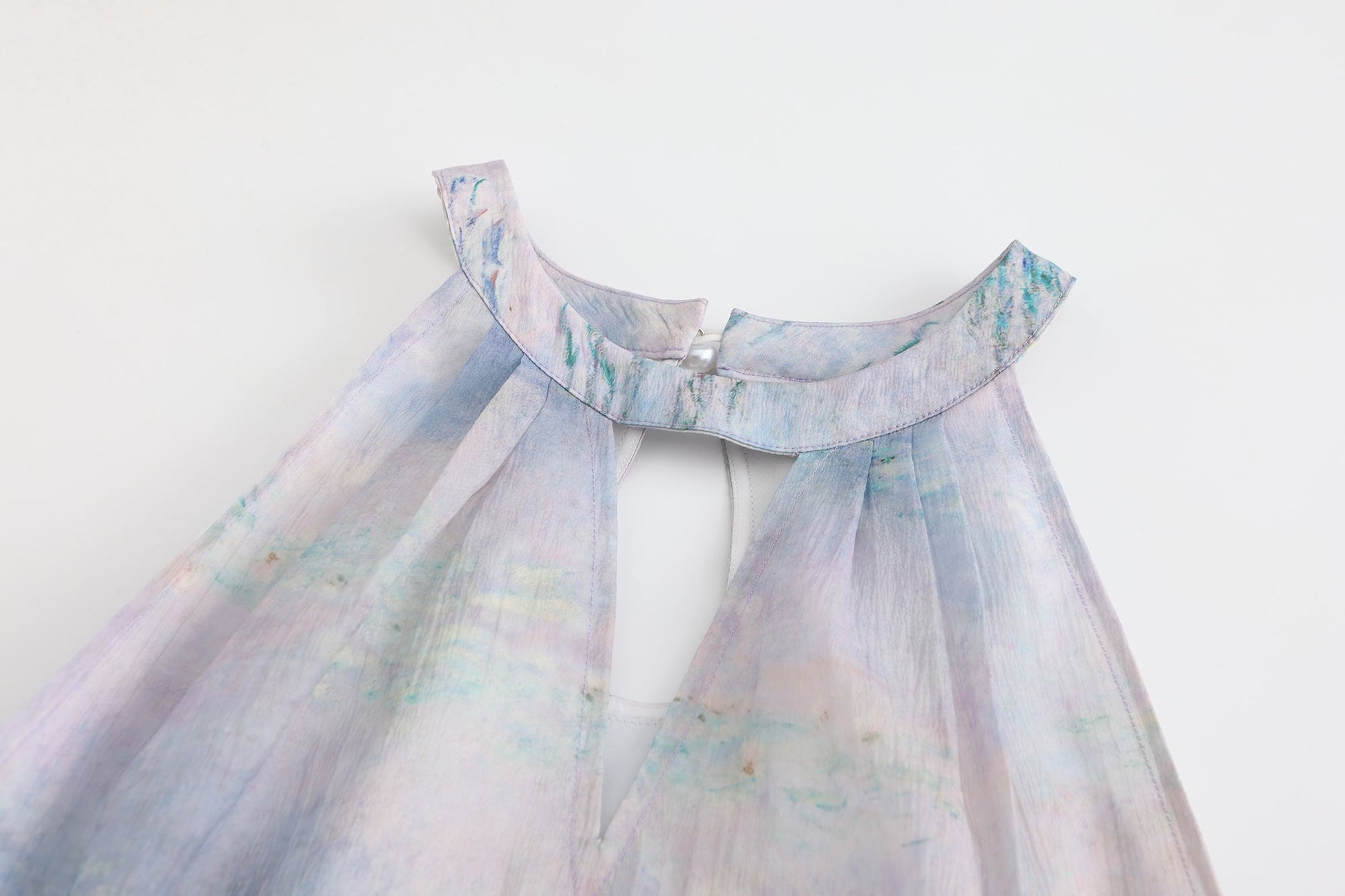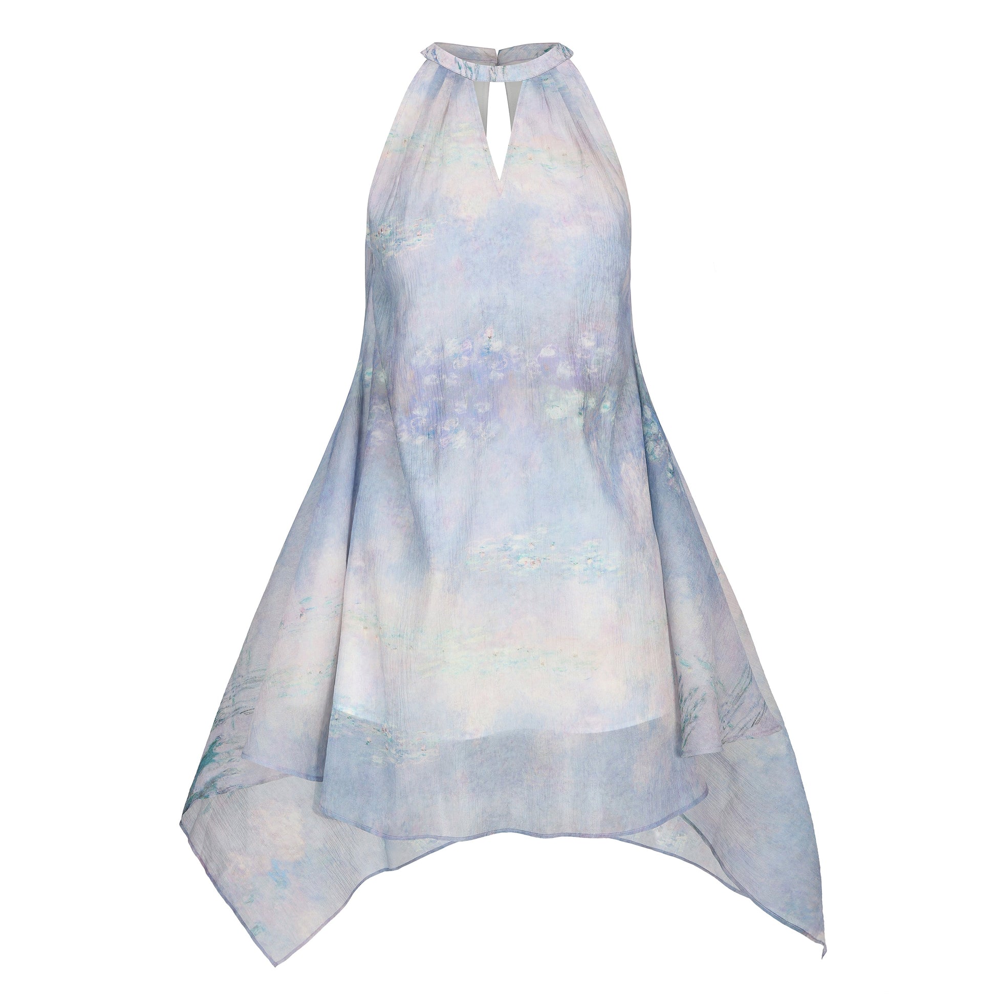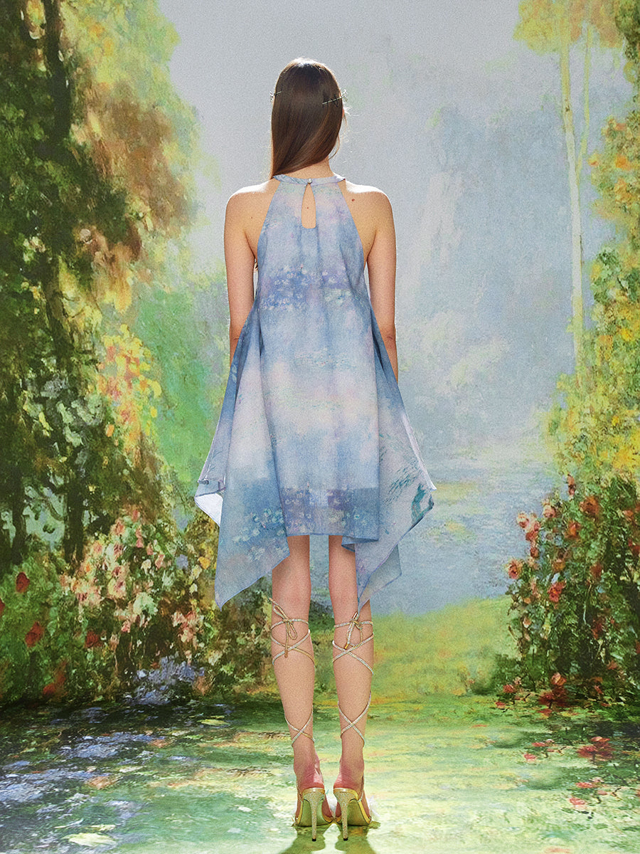 Water Lily Print Halter Dress:
