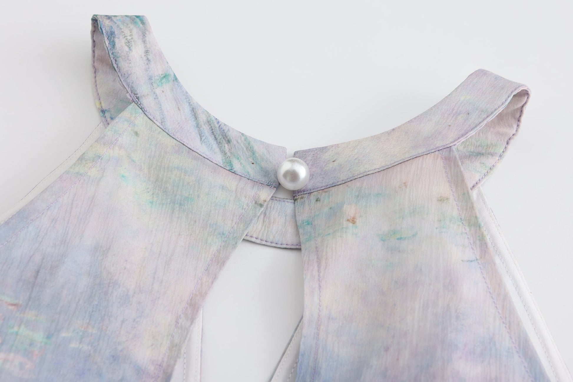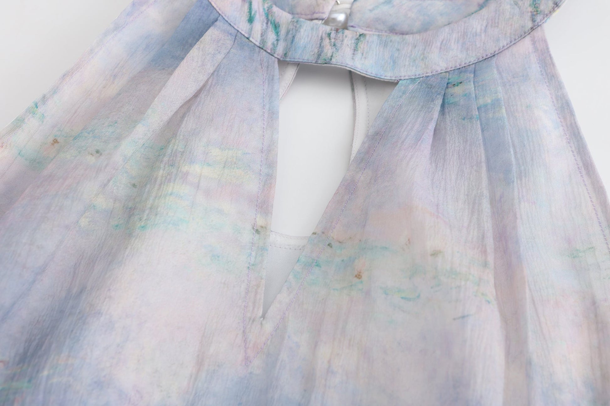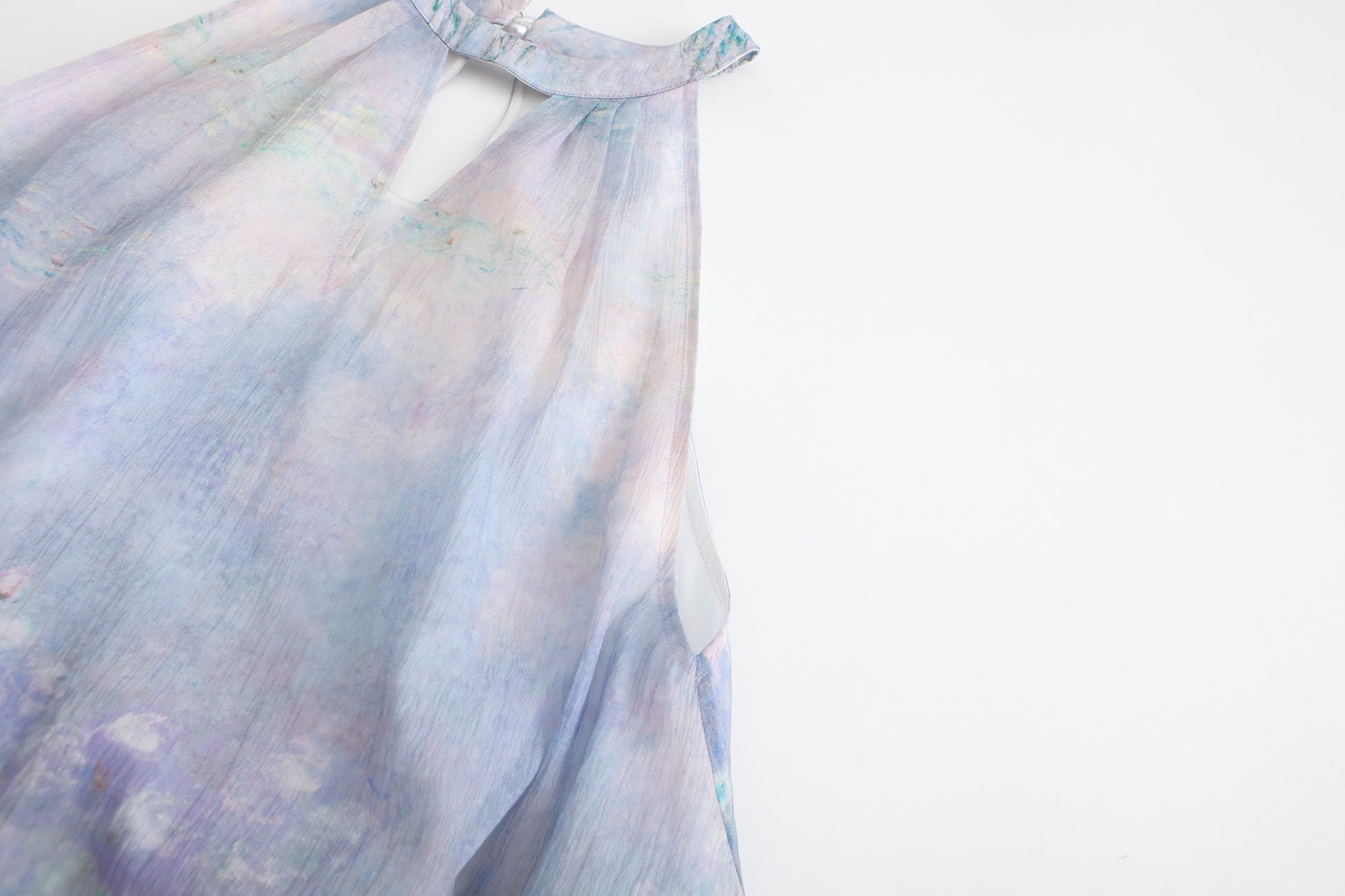 Water Lily Print Halter Dress: