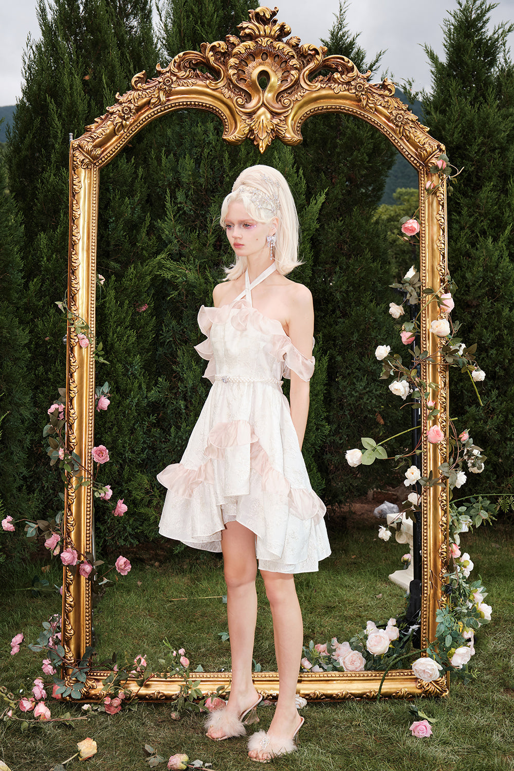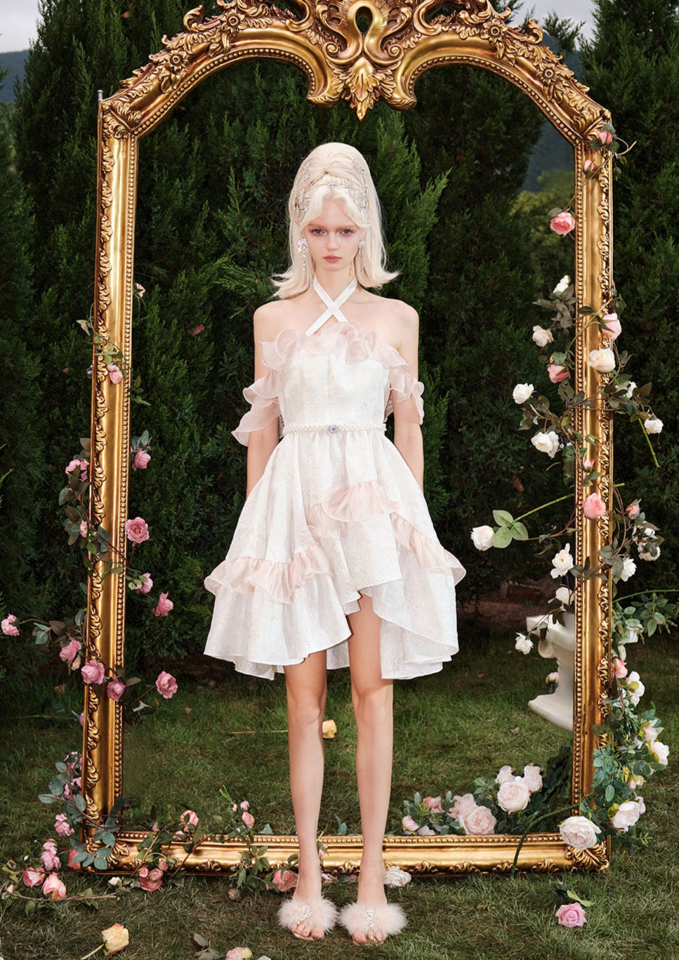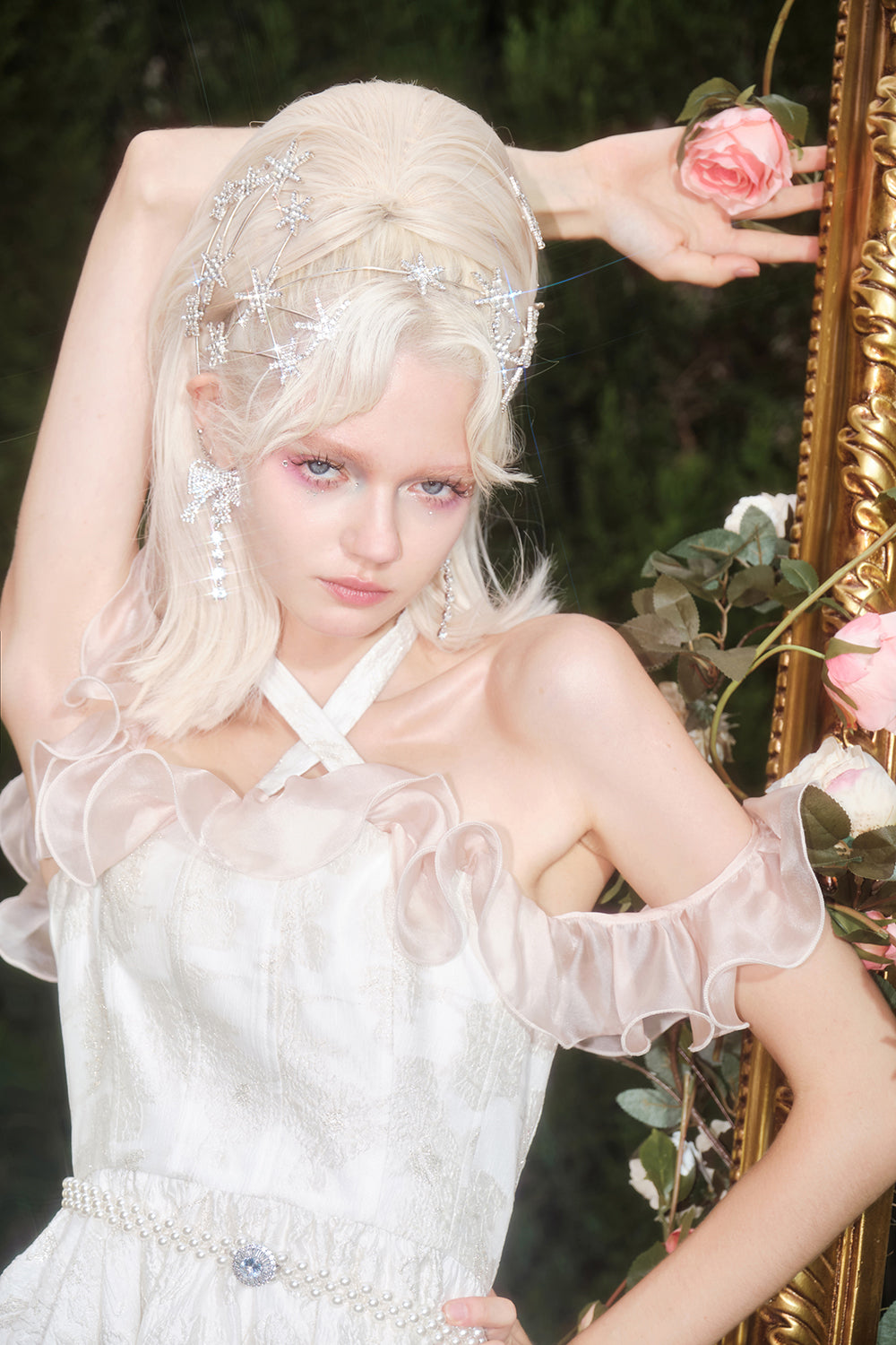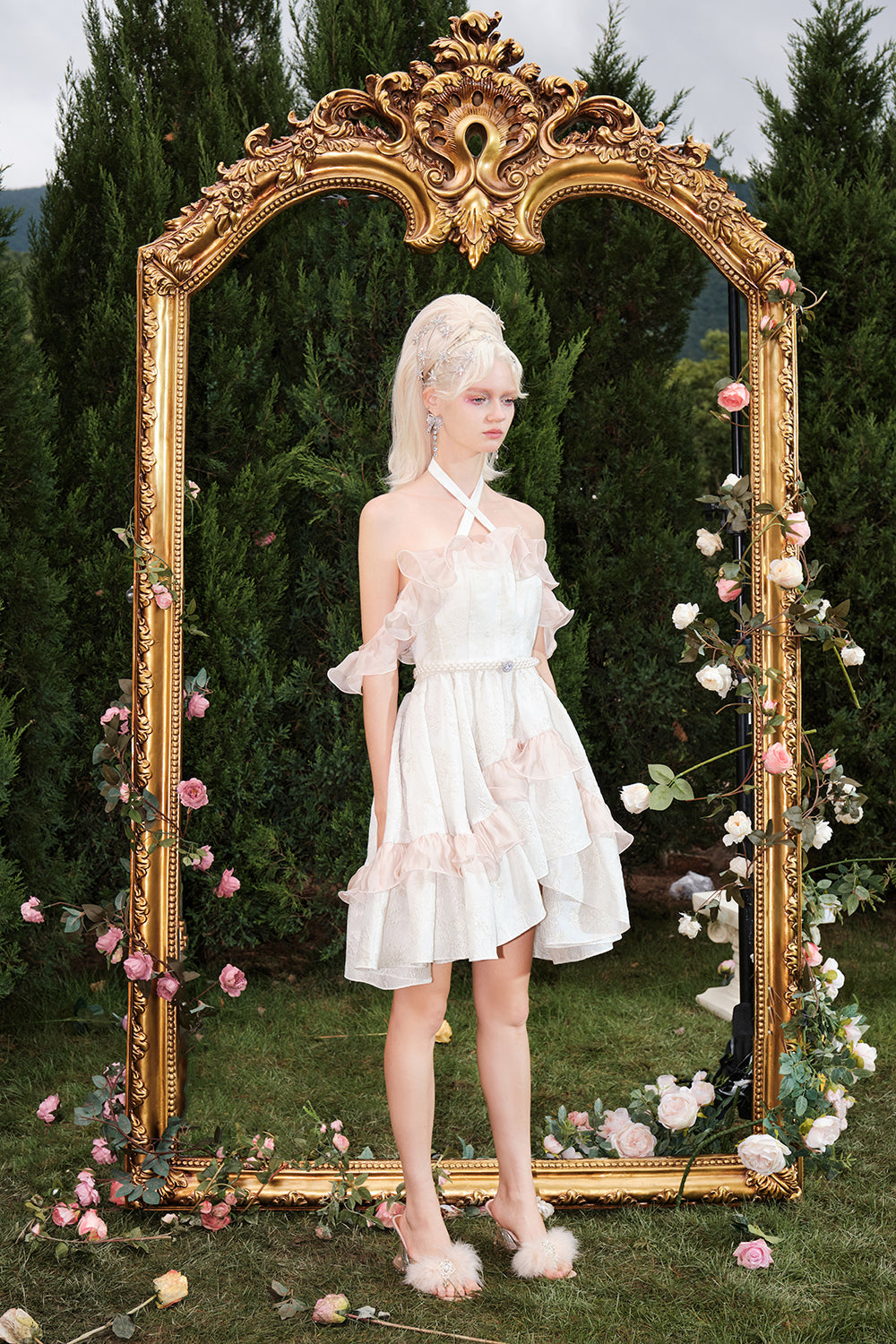 WHITE JACQUARD OFF SHOULDER PUFF DRESS